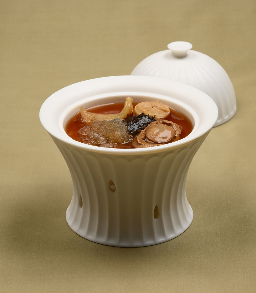 One of its most acclaimed dishes is “Buddha Jumps over the Wall” – Steamed Superior Abalone with Fish Maw in Bird’s Nest Soup. In this refined, shark fin–free rendition, abalone, fish maw, sea cucumber, and bird’s nest are simmered into a broth that takes several days to perfect. Elegant and deeply nourishing, it represents the pinnacle of Fujianese banquet tradition.